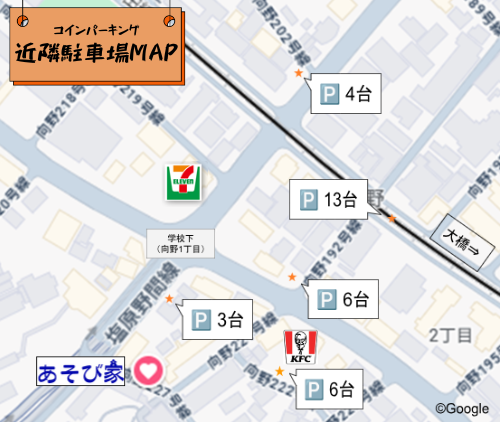 車でお越しの方は、近隣のコインパーキングをご利用ください。